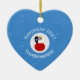 Angel dressed in the red, white, and blue flag of Chile on this heart shaped ceramic ornament for your Hanukkah decor this holiday season. Designed for families with multiple religions, the Chilean angel flies in the center of a circle of white squiggly squares. A background of blue squiggly squares completes the Hanukkah theme. Add a name to personalize. Add the year to customize. Or, add your own text.