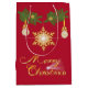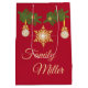 A personalized Christmas gift bag for adults and children with a sparkling golden snow crystal