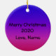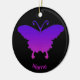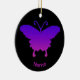 Personalize this Butterfly ornament with a name and holiday greeting. Butterfly silhouette over a background of purples, blues and Pink.
