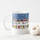 It's Christmas Eve and the night sky is filled with bright white stars. The street is covered in snow and the houses are lit with sparkly twinkling fairy lights. Everyone is inside warm and cozy in front of the fire drinking hot chocolate, ready and waiting for Father Christmas to arrive.