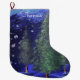 Personalize this Winter forest scene with evergreens, snowflakes and a calming night sky. Shades of blues, greens with accents of whites and browns.