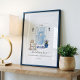 Welcome new homeowners in style with this personalized coastal chic front door poster! Perfect for housewarming gifts, newlyweds, or first-home celebrations, this unique and elegant poster features a hand-painted watercolor coastal blue front door design. The scene is accented with a black front porch light, door handle, silver hardware, and light grey trim, complemented by a white-and-navy striped doormat, a modern potted plant, and a cozy wooden rocking chair with a starfish decor pillow for a relaxed beachy vibe. Make it truly yours by adding your family name, optional address, and establishment year. All artwork is an original hand-painted design by © Moodthology Papery, making this a thoughtful, memorable, and stylish gift for any new homeowner.