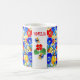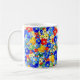 Here's a super bright and fun flower design mug, matching paper napkins, party invitation cards, and kids' age badges available!
