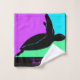 Bring vibrant tropical flair to your life with this striking black sea turtle silhouette, set against a bold geometric background of purple, turquoise, and mint green.