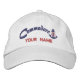 A dynamic personalized Commodore cap in nautical red, white, and blue style embroidered hat sure to make an impression on, or off the boat. Make this lifesaver anchor design embroidery as unique as you are with your name, your location, or your boat's name.