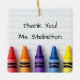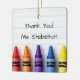 Celebrate an amazing educator with this cheerful crayon-themed teacher ornament featuring a colorful row of crayons and a heartfelt thank you message. Designed to resemble lined notebook paper, this ornament adds a playful classroom touch to any holiday tree. Personalize it with the teacher’s name to create a meaningful keepsake they’ll cherish year after year. Perfect for teacher appreciation, end-of-year gifts, or holiday thank-yous, this ornament is a fun and thoughtful way to recognize the impact teachers make every day.