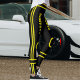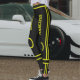 Show off your bond with these Personalized Couples Names Black and Bright Yellow Stripes Yoga Pants. Featuring bold black “SARAHHH” and “MARCUSS” text on each thigh, round black circle emblems with white borders on the knees, and a playful curved text “MY DUDE OWNS IT” on the back with a sleek palm graphic — this sporty-chic design celebrates love in motion. With stylish black and white side stripes and calf accents, it’s the ultimate personalized activewear. Add your names and make it uniquely yours — customize your connection today!