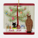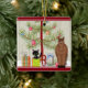 Personalized Cute Brown Horse and Cat Christmas Ceramic Ornament