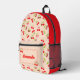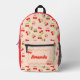 This personalized cherry dessert pattern backpack features playful red cherries, pink bows, cupcakes, and chocolate-dipped treats on a soft peach background. Designed for kids, tweens, and teens who love cute, cozy aesthetics, it’s perfect for school, daycare, travel, or activities. Add a name for a charming, practical design that’s easy to identify and full of personality.