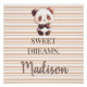 Below the illustration, the classic "Sweet Dreams," message is followed by your child's name in a beautiful, flowing script. The warm espresso tones of the text coordinate perfectly with the panda's features, while a crisp white outline ensures the name is easy to read against the patterned background.