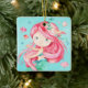 Personalized Cute Red Haired Mermaid Christmas Ceramic Ornament