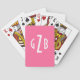 Our beautiful playing cards are waiting for your monogram. Consider these as a birthday or holiday gift for everyone in your bridge or poker club. This deck of bicycle playing cards features a soft pink background with a white typography monogram.