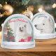 Enjoy your favorite photos of your dog with this customizable snow globe. Customize with a picture on both sides and your pet's name. An elegant and festive keepsake gift for animal lovers.