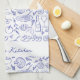 Personalized Dolce Vita Italian Food Drawings Blue Tea Towel