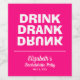 Personalized wine bottle labels feature the bachelorette's name and the words Drink Drank and the word Drunk upside down. Fun to serve at your bachelorette party or give as party favors. We show a hot pink background, but you can change it to any color. MATCHING items in our store.