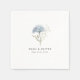 Soft dusty blue watercolor florals paired with clean typography create an elegant, modern look for wedding napkins.
