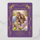 Celebrate the joy of the season with this personalized gold foil Happy Easter family photo card. Featuring elegant gold foil lettering, a delicate ribbon bow design, and a charming Easter egg accent, this card is printed on a purple background for a timeless look. Personalize the front with your favorite family photo and custom names, and add a heartfelt message on the back to create a meaningful keepsake your loved ones will cherish. The real gold foil detailing adds a luxurious touch, making this card perfect for families who appreciate classic elegance with a modern feel. Ideal for sending warm Easter wishes, this sophisticated photo card is a beautiful way to share springtime joy with friends and family.