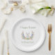 Complete your Easter table setting with these matching personalized paper plates. Featuring a delicate watercolor white bunny and spring floral wreath, they are the perfect addition to your holiday brunch or dinner. Custom with your family name for a special touch.