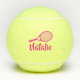 Personalized tennis balls printed with custom name and modern pretty script font and 2 simple tennis racquet.