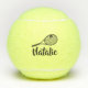 Personalized tennis balls printed with custom name and modern pretty script font and 2 simple tennis racquet.
