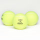Personalized tennis balls printed with custom name and modern pretty script font and 2 simple tennis racquet.