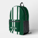 This personalized backpack features a classic white dual racing stripe design on an English green background, inspired by timeless motorsport and vintage car styling. Clean, simple, and unmistakably sporty, the design evokes classic muscle cars, racing heritage, and retro automotive aesthetics. Customize this backpack with a name, monogram, initials, or short text, making it a practical and stylish accessory for travel, gym use, or everyday organization. Perfect for racing fans, classic car enthusiasts, and anyone who appreciates bold, minimalist design with a motorsport edge. A great personalized gift idea for Father’s Day, birthdays, groomsmen, or car lovers, this racing stripe backpack combines function, durability, and timeless style.