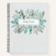 Elegant personalized notebook featuring a soft watercolor eucalyptus and leafy greenery frame on the front and a coordinating botanical border on the back. Customize with any name or title for yourself or a thoughtful gift.