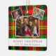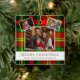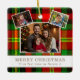 Personalized Family 3 Photo Green Plaid Christmas Ceramic Ornament