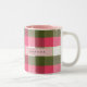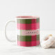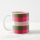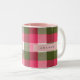 Personalized Festive Pink and Green Plaid Two-Tone Coffee Mug