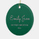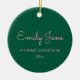 This sweet emerald green design creates a classic keepsake for celebrating a baby’s first Christmas. The soft pink lettering adds a warm, modern touch while keeping the overall look timeless. Personalize the name and year to create a meaningful piece for your tree or a heartfelt gift for new parents. A simple, elegant way to remember a little one’s earliest holiday season.