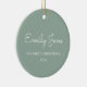 Celebrate your baby's first Christmas with this charming personalized ceramic ornament. The name side features a soft sage green background with cute script writing, while the other side showcases a cherished photo. This adorable ornament is a perfect keepsake to commemorate this special milestone, adding a sweet and personal touch to your holiday decor. A delightful addition to your tree or a thoughtful gift for new parents!