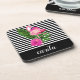 Personalized Flamingo Striped Hard Plastic Coaster