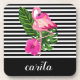 Striped hard plastic coaster with flamingo image. Personalize this product by adding your name to it