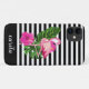 Striped iPhone case with flamingo image. Personalize this product by adding your name to the case.