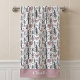 This beach towel design is complete with a seamless pattern of green trees and pink hearts set against a white background. There is a place to add your name at the bottom of the towel.