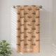 This construction-themed kids beach towel design is complete with a seamless pattern of yellow front loaders set against a simple brown background. There is a place to add your name at the bottom of the towel.