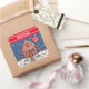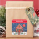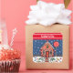 A colorful illustration of a festive gingerbread house. The outside of the house is decorated with two candy canes and has a large lollipop tree in the garden. The ground is covered in bright white icing sugar snow and strewn with sweets.
