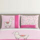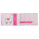 Add a touch of llama love to your child’s room with this charming pillowcase duo! The front pillowcase features a beautifully illustrated llama adorned with a colorful saddle blanket and necklace, set against a soft pink background with a bold accent stripe for name personalization.