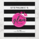 Add a touch of chic to any celebration with our Glam in a Glass personalized wine label. Featuring bold black and white stripes with elegant pink accents, this design is customized with your name for a truly unique statement piece. Perfect for birthdays, girls’ nights, bachelorettes, or any glam occasion, these labels turn ordinary bottles into stylish centerpieces. Easy to apply and designed to impress, they’re the perfect blend of fashion and fun.