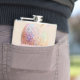 Well made flask, a little better than I had expected. Flask came in clear plastic box which gave it a nice presentation when I took it out of the zazzle packaging. Image is not printed on flask but on sticker. Don't know how this will hold up I haven't used it yet. This would make a Great gift! I plan to purchase more for friends! Cheers. I thought a little brighter than computer. Very crisp, writing wasn't