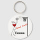 Netball themed design key ring with personalized name option and good luck text. Netball player and coach gift ideas.