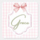 Personalized Grace Baby Girl Nursery Bow&Gingham Square Sticker