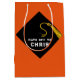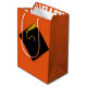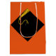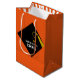 Graduation gift bag featuring creative cap design on orange background. To personalize edit text to add name of grad.