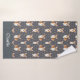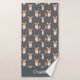 This corgi bath towel design is complete with a seamless pattern of cute corgis as well as a gray background color and a place to add your name.