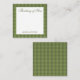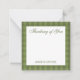 Personalized stationery enclosure notecard with a green gingham pattern in notes of deep forest sage olive garden green with the sentimental words "Thinking of You". Tuck it into a flower bouquet or meaningful gift. These minimal flower shop inspired enclosure cards bring a retro kitchen vibe to your most thoughtful moments.