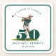 Personalized Green Sports Golf 50th Birthday Square Paper Coaster.