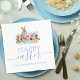 Personalized Happy Easter Cute Bunny Wildflower Napkin