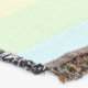 A quality printed throw has its advantages. This is a much finer weave throw than its loopier cousins, and though lighter, it is worth the investment for custom room accessorizing. The back is much prettier than the typical brown, and the fringe on the long sides very vivid, the selvage nicely done. Before photographing, I washed the throw in cold water, delicate, with a thicker woven throw the same size. On tumble dry low, this throw was dry in half the time as the other. This is a very practical quality if you use throws for furniture covers or to wrap up in frequently. The sleekness of the fabric makes it a great layer for accenting or protecting without the feeling of sitting on too much stuff. Perfect for napping or when you feel a light chill coming on. The color printing is beautiful and on this fabric, matched the design and color of my Photoshop image. This is an advantage for blending room fabrics and colors. The fringe on the short sides prints the colors from the design image and therefore varies from the side fringe. I streaked a white fractal line through the plaid pattern to give the illusion of weaving. This printed as crisp as an illusory thread, and put some white in the short side fringe, showing another advantage of print vs loomed- for artistic purposes, line lines, detail, and color integrity can be planned and preserved. My loomed throws have color limitations and more of a needlepoint texture. Print throws reproduce an exact image. The throw felt a little stiff straight out of the package, but this went away in the first delicate wash. Of course I searched the wash water for ink or bleeding and there was none.