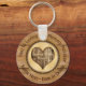 Personalized Inexpensive Memorial Gifts. Sympathy Keychains with a wood look printed frame, wood look heart and Your Text. Type in Your Memorial Message or Keep "In Loving Memory" and or "Forever in Our Hearts". Type in his Name, Date or Your Text or Delete. CALL Designer Linda: 239-949-9090 EST for Design CHANGES. You, or Designer Linda can TRANSFER this design to your choice of THOUSANDS of other inexpensive sympathy memorial souvenirs for family and friends.