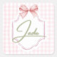 Personalized Jade Baby Girl Nursery Bow&Gingham Square Sticker